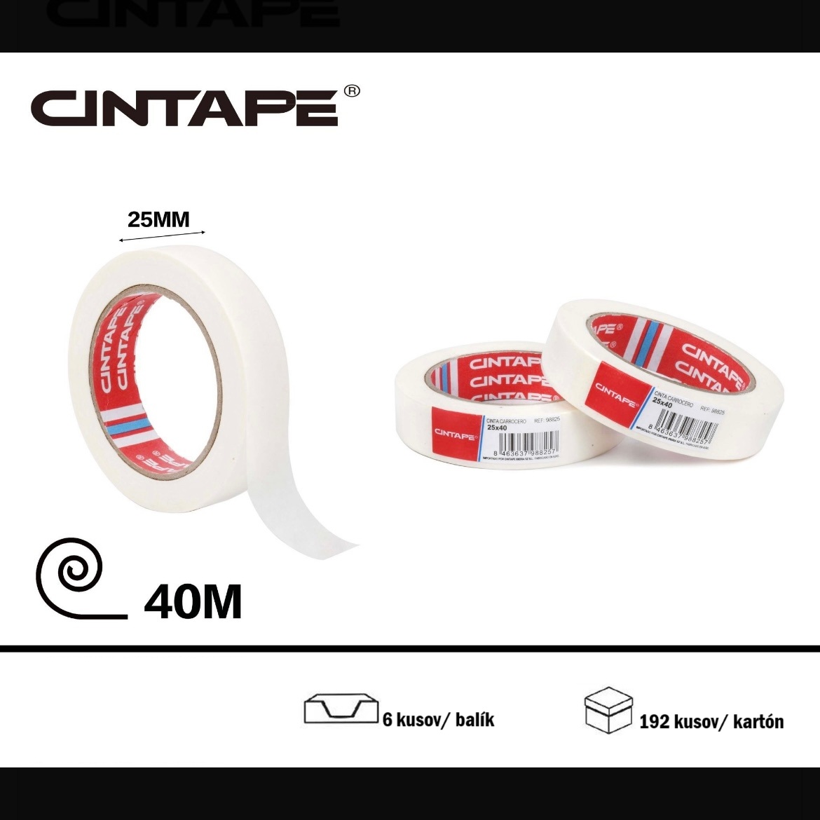 Krepová maliarska páska CINTAPE® – 25mm x 40m, biela, 6 ks v balení