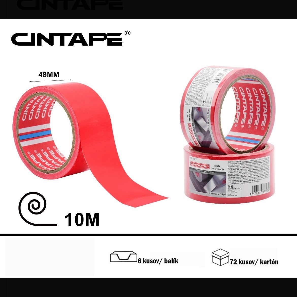 Červená univerzálna textilná zosilnená páska CINTAPE® (duct tape) je odolná textilná páska so zosilnenou štruktúrou je určená na široké spektrum opráv, lepenia a utesňovania v interiéri aj exteriéri. Vďaka kombinácii vysokej pevnosti, priľnavosti a vodeodolnosti je nepostrádateľným pomocníkom v domácnosti, dielni, na stavbe aj v priemysle.