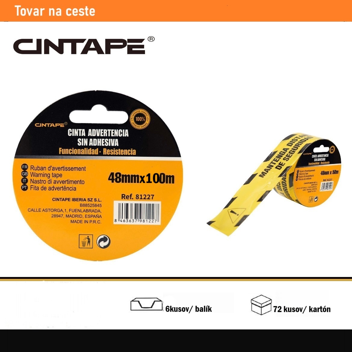 Výstražná páska CINTAPE® – rýchle a zreteľné označenie nebezpečných alebo neprístupných zón. Kontrastné farby a čitateľný text upútajú pozornosť, odolný materiál zaručuje spoľahlivé použitie v interiéri aj exteriéri.